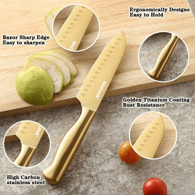 Mccook mc21g luxury golden titanium kitchen knife set with sharpener and block